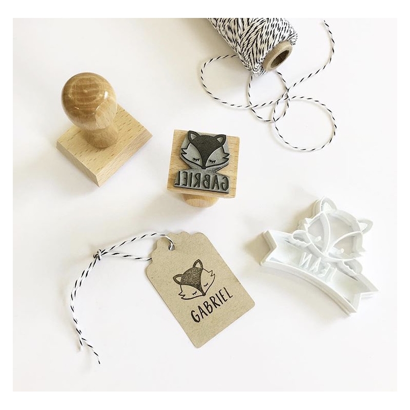 Laissez-vous séduire par ce mignon tampon encreur en bois illustré d'une tête de renard et personnalisé avec le prénom de votre enfant. Grâce à lui, vous pourrez personnaliser les enveloppes de vos faire-part de naissance ou de vos invitations baptême, décorer des cadeaux d'invités, marquer ses habits pour la crèche, etc.