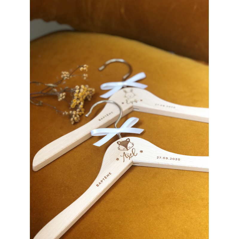 La commande comprend la gravure du cintre enfant avec les textes de votre choix.