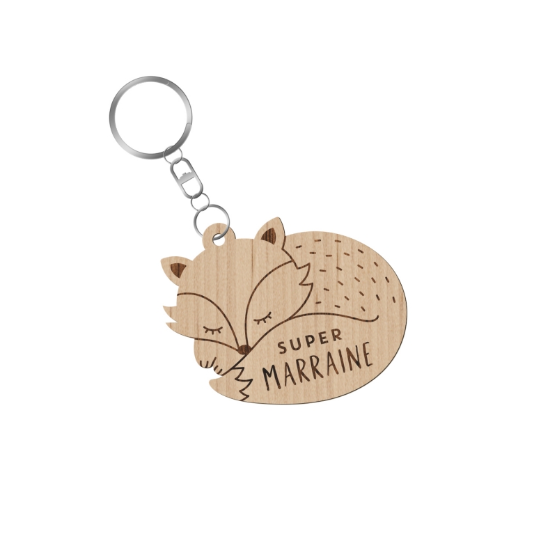 Porte-clé en bois personnalisé modèle Renard endormi - Print Your Love