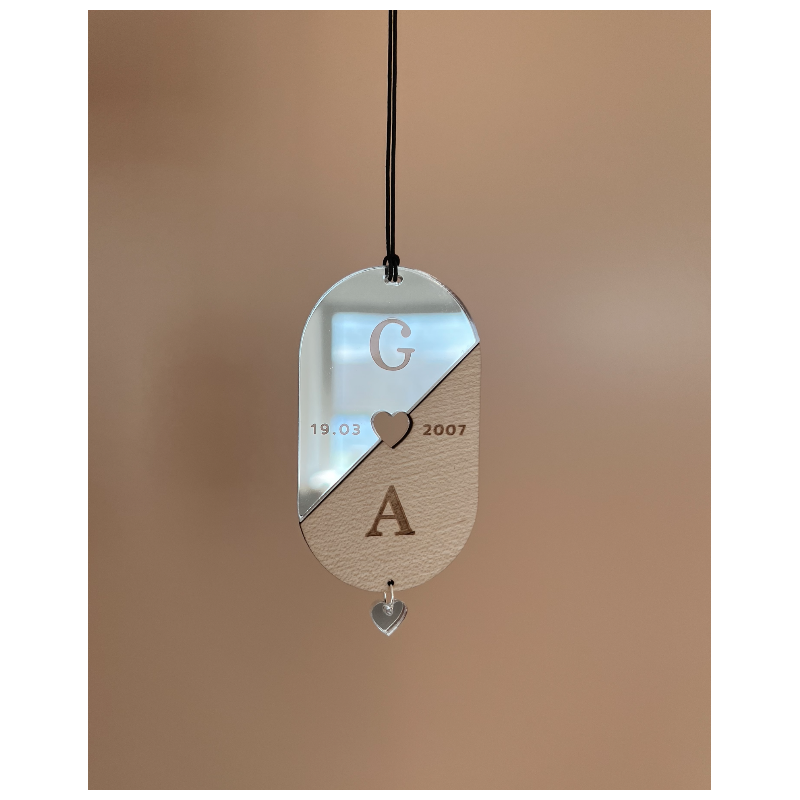 Décorez le rétroviseur de votre voiture grâce à ce petit grigri porte-bonheur : un bijou de voiture personnalisé avec vos initiales et date de rencontre ! Le bijou As de coeur a été réalisé sur la base d'une carte de jeu avec un mélange de matière pour un rendu original et élégant à la fois !