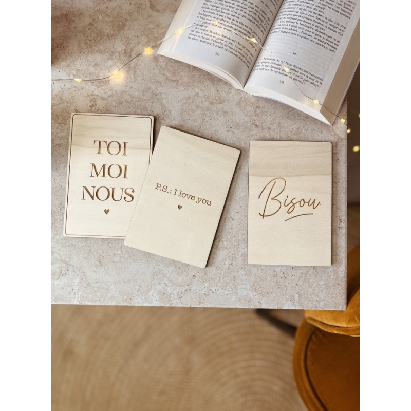 Carte postale en bois originale Bisou. - Print Your Love