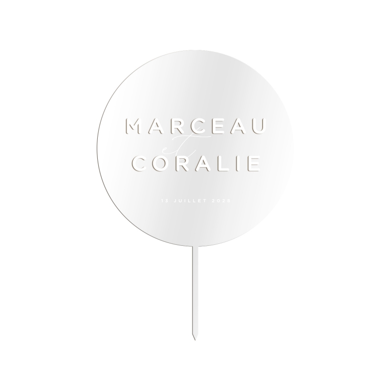 Cake topper mariage personnalisé rond plexiglas - Print Your Love